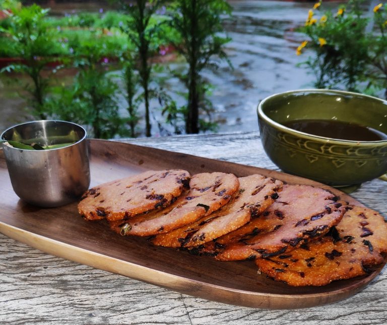 20 years ago, two kids were on their first-ever train journey. As the train choo-chooed into Maddur Railway Station, a heavenly aroma wafted in and jerked the two children awake. The curious little tots ran to the open window to investigate the source of the aroma. The platform was teeming with people and their curious eyes couldn’t see anything else. Suddenly a street hawker came up to the window and asked them, “Bisi-Bisi Maddur vade, beka?” (Do you want a hot Maddur vada?). The hawker carried a plate filled with some flat, round snacks. The little girl leaned in for a closer look and the same heavenly aroma from the platform hit her nostrils again. That was my first encounter with the Maddur vada.